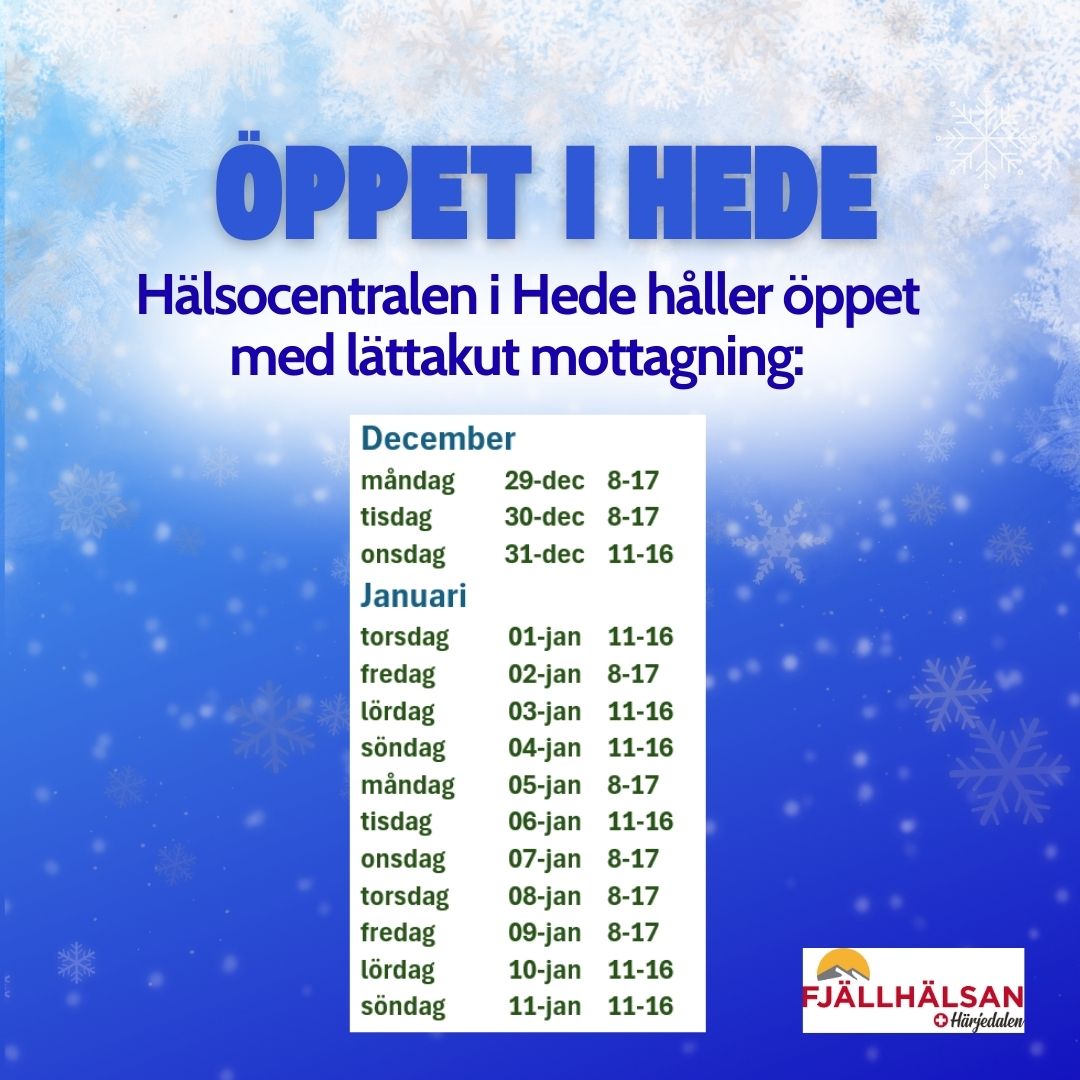 ÖPPETTIDER HEDE hälsocentral